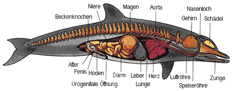 Der Delphin muss als Warmblüter eine konstante Körpertemperatur von ungefähr 36 Grad beibehalten.