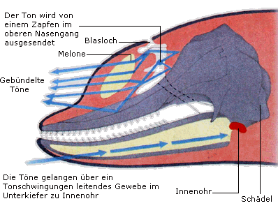 Neben der Schallwahrnehmung über das Trommelfell können Zahnwale Ultraschalllaute aufnehmen und erzeugen.